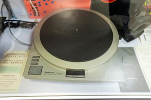 At the museum, rows of glass cases are filled with iconic turntables and mixers sourced from the personal collections of some of those influential artists, alongside other rarities like a 1983 Randix HG-40P boombox and record player hybrid.