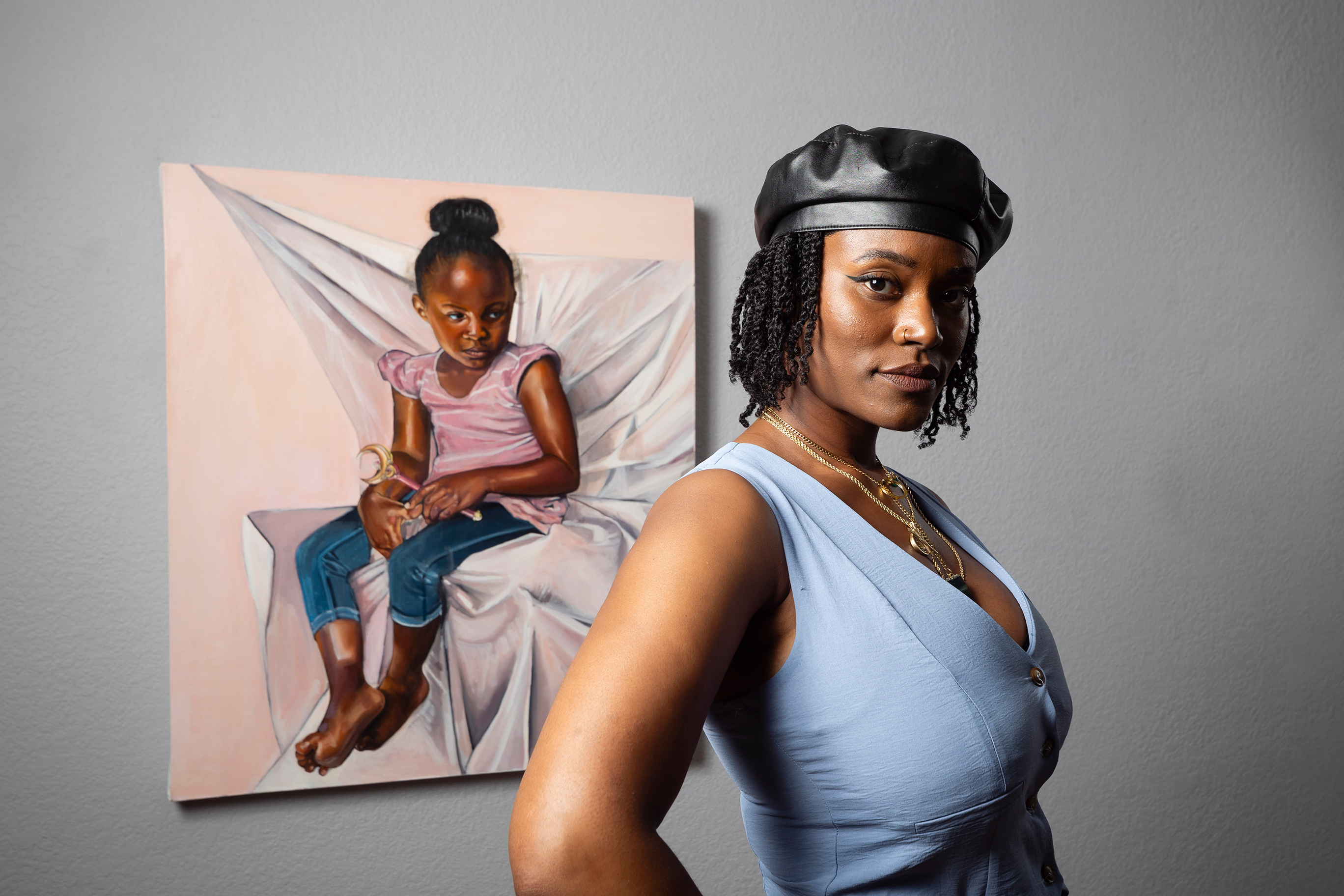 In her first solo exhibit at Left of Center Gallery, local artist and educator Q’shaundra James challenges us to look beyond that veil, aiming to address the stereotypes we perpetuate and the lens in which we view her art. In the early days, James’ portraits of Black subjects—from little girls in ballerina buns to chocolate-toned women with afros—would stop art critics cold, and for all the wrong reasons. The artist often fielded questions about why she was painting Black people at all. Was it a political statement? A portrait of Black struggle? Her stunning techniques always felt secondary.