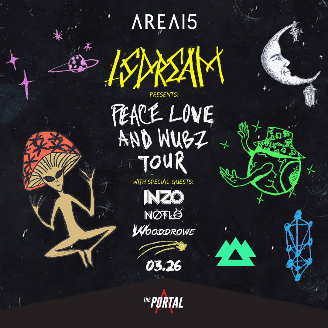 Let LSDREAM take you on a psychedelic bass journey. Dance all night in AREA15’s outdoor A-Lot celebrating his good vibes release, PEACE LOVE AND WUBZ, to an audiovisual art DJ spectacular that you swear you can feel. Events in Las Vegas get canceled every now and then. It doesn’t hurt checking with the venue to confirm the listing. Explore even more of what the Las Vegas Strip has to offer with the Vegas2Go app. It’s your ultimate guide to eat, play, shop and party across Las Vegas. Vegas2Go is now available as a free download in Apple’s App Store and in the Google Play Store.