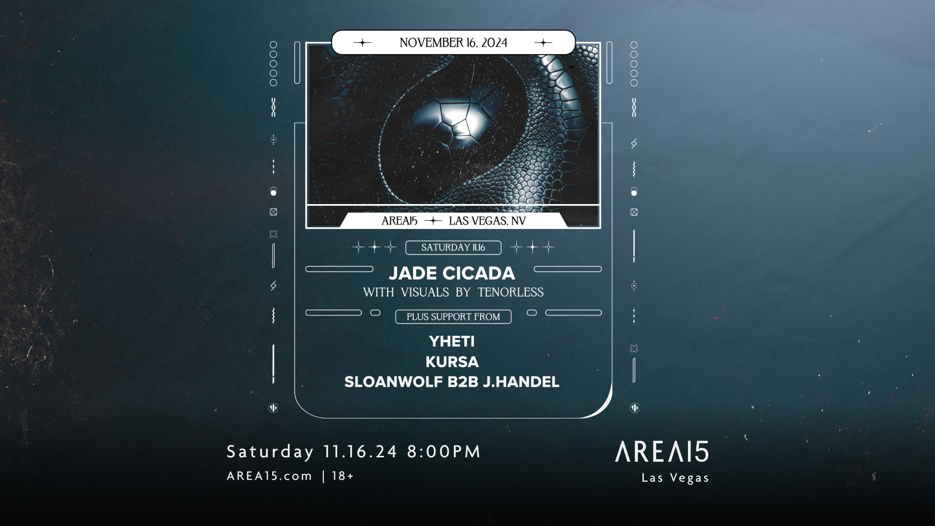 Renowned as “Godzilla” of electronic music, Jade Cicada brings his signature blend of minimalism and maximalism to A-Lot at AREA15 on Saturday, November 16th. From classical roots to his studies at Berklee College of Music, Jade Cicada has crafted a dynamic, genre-defying sound that's captivated festivals and venues nationwide since 2015.