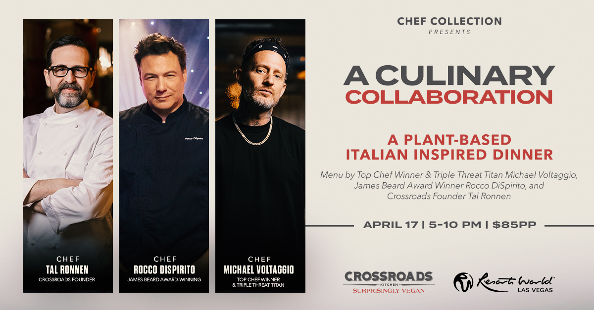 Mark your calendar for April 17, 2025, and experience an extraordinary plant-based Italian dinner like never before. James Beard Award-winning chef Rocco DiSpirito and Top Chef Season 6 winner Michael Voltaggio have partnered with Crossroads founder Tal Ronnen for a culinary collaboration that redefines Italian cuisine. For $85 per person, savor five meticulously crafted courses designed to surprise, delight, and transport you to an otherworldly dining experience.