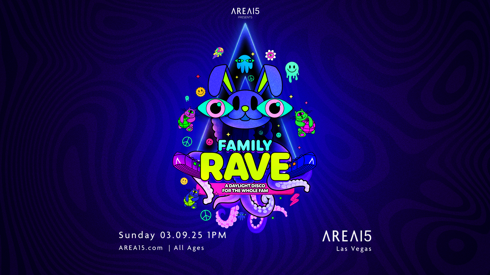 Get ready to groove at the AREA15 Family Rave – a daytime disco where the whole fam can dance, play, and have a blast together! Join us for a fun-filled event full of music, lights, and family-friendly activities that will create unforgettable memories for everyone.