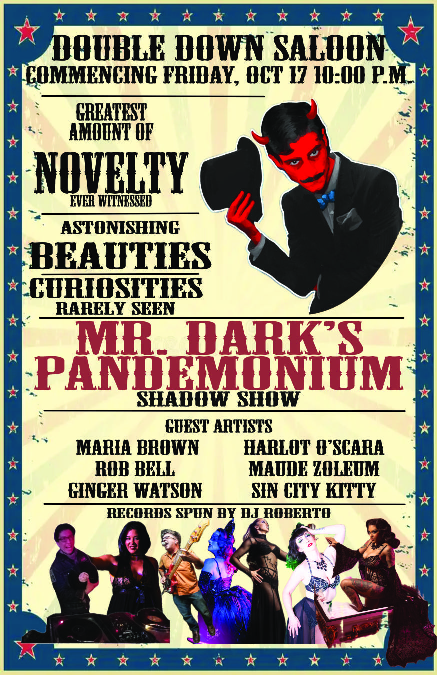 Welcome to the world of Mr. Dark! The thrill of vaudeville, cabaret, dark carnivals and burlesque at the iconic Double Down Saloon #doubledownsaloon Oct 17th! 10:00 pm PST Click HERE for live stream.