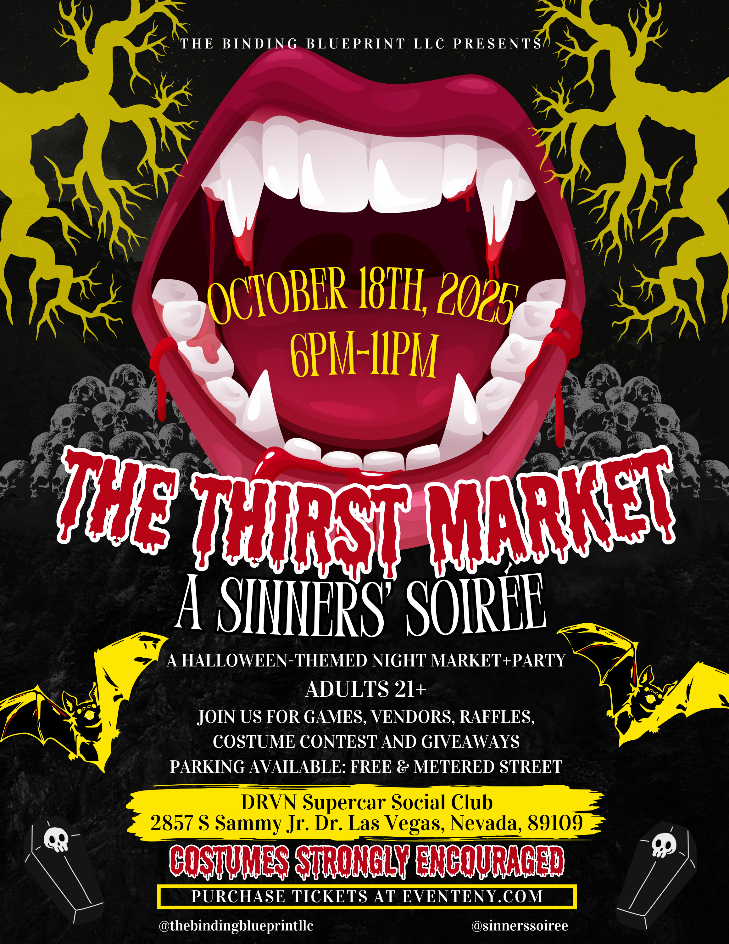📅 Event Details: Date: Saturday, October 18, 2025 Time: 6:00 PM – 11:00 PM Location: DRVN Supercar Social Club- 2857 S Sammy Davis Jr. Dr. Las Vegas, Nevada 89109. Age Restriction: 21+ ONLY (Valid ID required for entry) 🚨