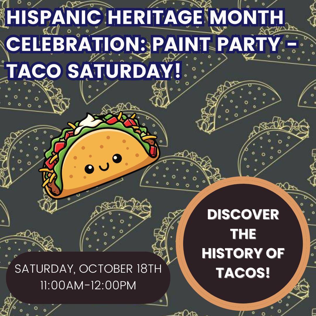 Discover the fascinating history of tacos in this hands-on workshop at the museum as part of our Hispanic Heritage Month celebration on Saturday, October 18, from 11:00 am to 12:00 pm. Learn how this iconic dish became a favorite while you paint your own plate of tacos—no experience needed and all materials provided. The workshop is presented in English with Spanish Q&A available, and space is limited to 20 guests, so reserve your spot early. Recommended for ages 12 and up, with all activities included in museum admission or membership.