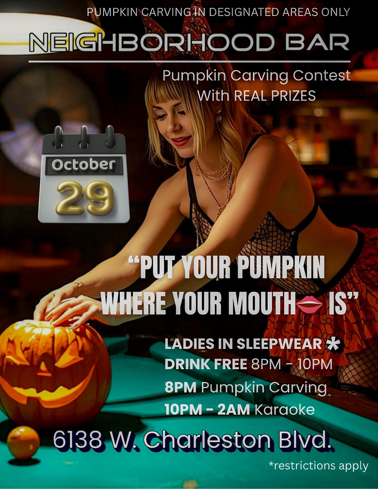 Join us for our Pumpkin Carving Contest & Cozy Costume Night! Dress in your favorite onesie, pajamas, or seductive sleepwear and carve your way to fun prizes and bar glory.
