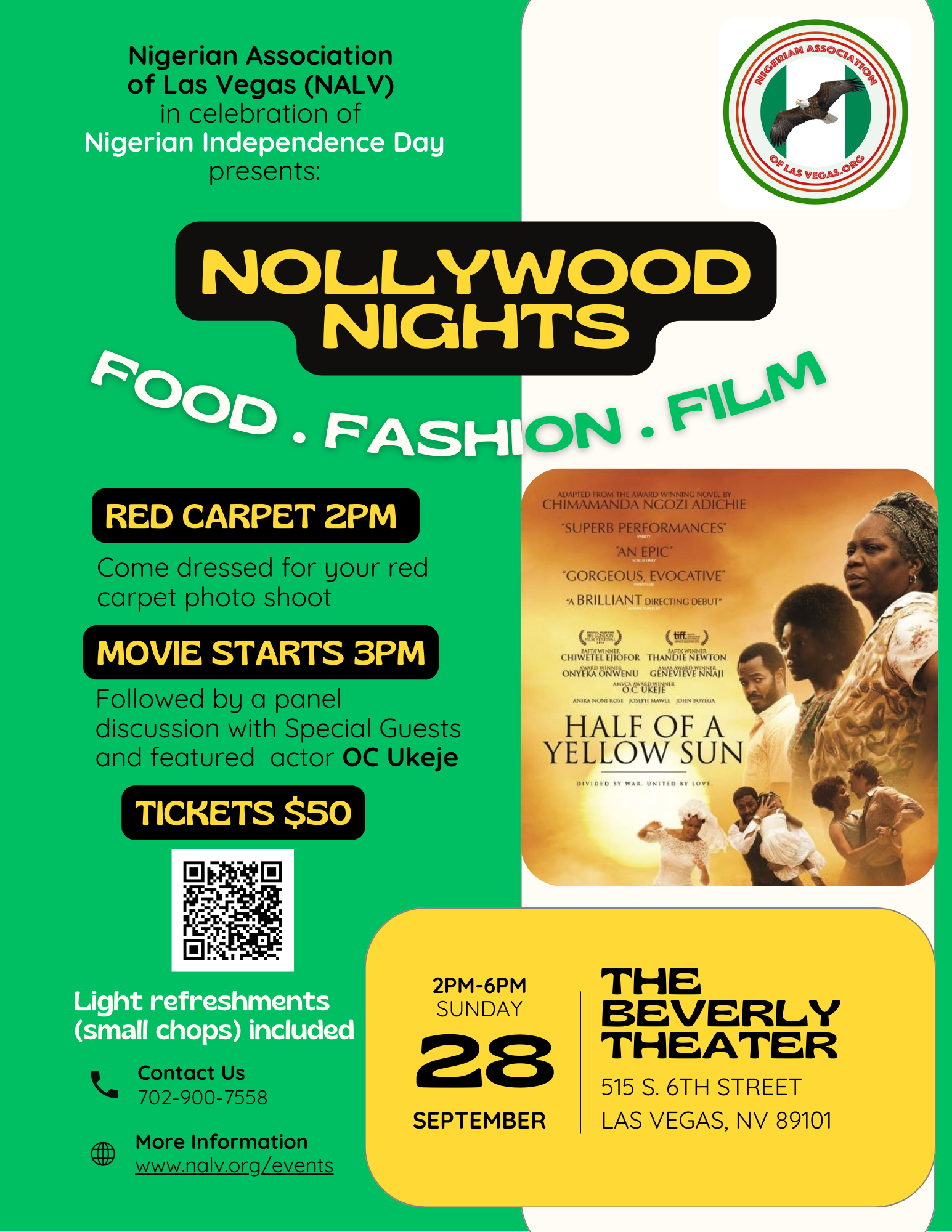 The Nigerian Association of Las Vegas (NALV) proudly presents Nollywood Nights: A Nigerian Independence Day Celebration, an immersive cultural event showcasing the richness of Nigerian history, fashion, art, and entertainment. Taking place on Sunday, September 28th from 2:00 PM to 6:00 PM at The Beverly Theater in downtown Las Vegas, the event will feature a screening of the critically acclaimed film Half of a Yellow Sun, adapted from Chimamanda Ngozi Adichie’s award-winning novel. Events in Las Vegas get canceled every now and then. It doesn’t hurt checking with the venue to confirm the listing. Explore even more of what the Las Vegas Strip has to offer with the Vegas2Go app. It’s your ultimate guide to eat, play, shop and party across Las Vegas. Vegas2Go is now available as a free download in Apple’s App Store and in the Google Play Store.