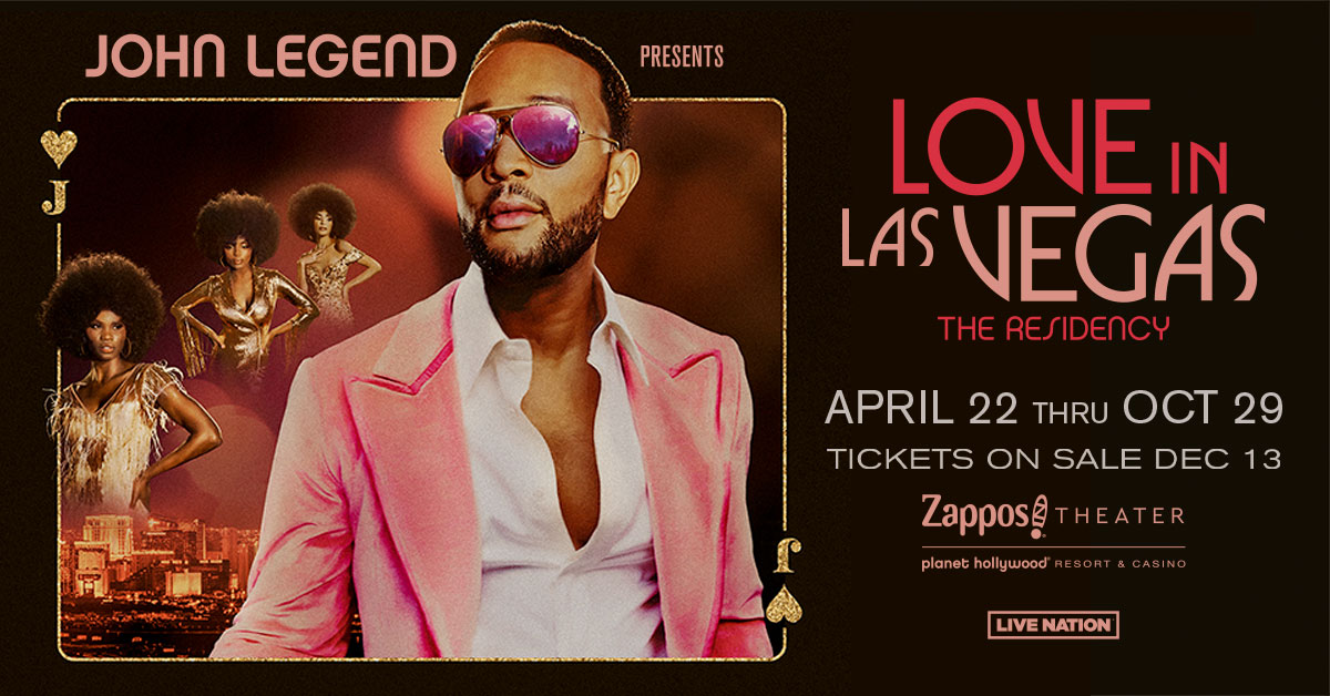 John Legend is bringing his brand new Las Vegas Residency Love in Las Vegas to the Zappos Theater at Planet Hollywood this April through October! Events in Las Vegas get canceled every now and then. It doesn’t hurt checking with the venue to confirm the listing. Explore even more of what the Las Vegas Strip has to offer with the Vegas2Go app. It’s your ultimate guide to eat, play, shop and party across Las Vegas. Vegas2Go is now available as a free download in Apple’s App Store and in the Google Play Store.
