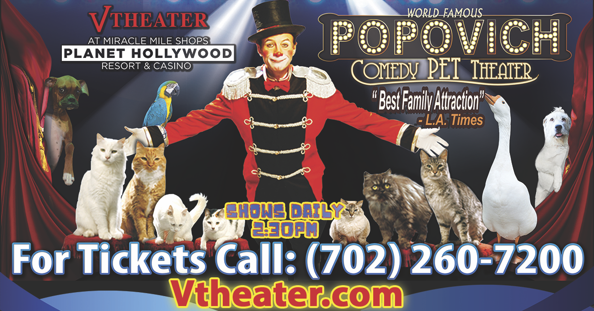 Comedy Pet Theater—a Guinness World Record-holding production and beloved family favorite! This charming show combines old-world elegance with vaudeville juggling, showcasing incredible rescue pets performing delightful tricks on the Las Vegas Strip. Events in Las Vegas get canceled every now and then. It doesn’t hurt checking with the venue to confirm the listing. Explore even more of what the Las Vegas Strip has to offer with the Vegas2Go app. It’s your ultimate guide to eat, play, shop and party across Las Vegas. Vegas2Go is now available as a free download in Apple’s App Store and in the Google Play Store.