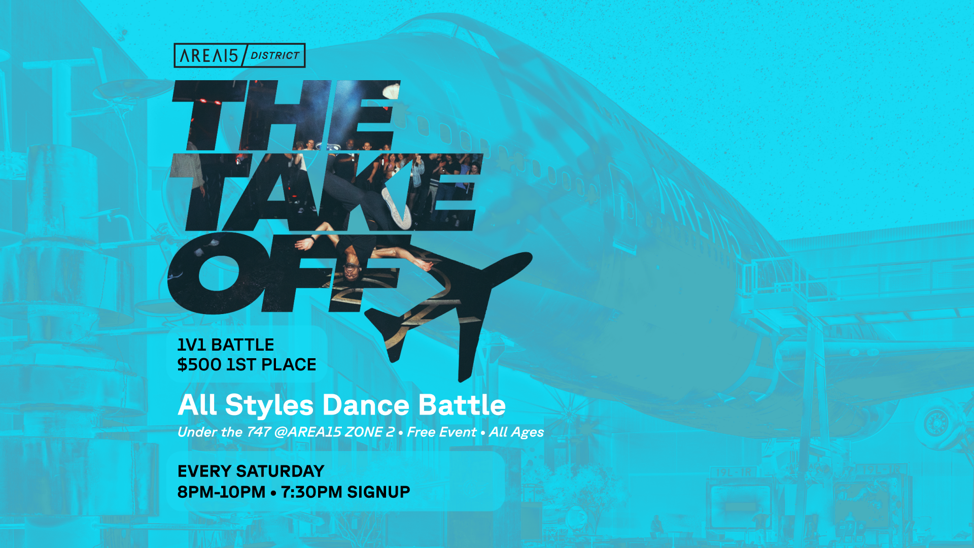 Get ready to witness some mind-blowing moves at The Take Off 1v1 All Style Dance Battle! Top dancers will battle it out in a fierce competition, showcasing their unique styles and skills. Don’t miss this electrifying event filled with jaw-dropping talent and non-stop entertainment!