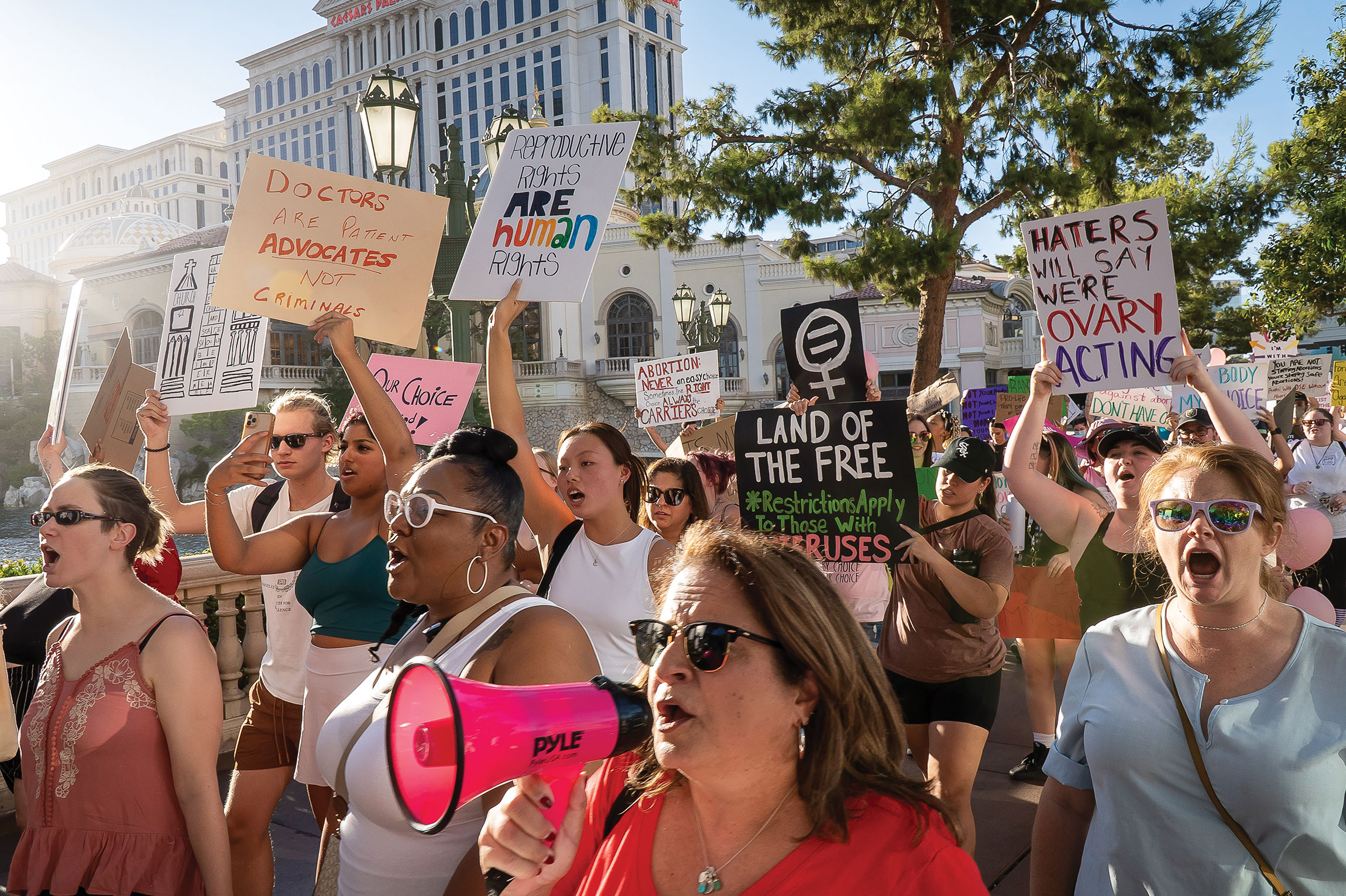 Organizers say more than 1,000 showed up for the July 8 Bans Off Our Bodies demonstration, which started at Bellagio and ended at the hotel and casino where Trump was singing the praises of Republican primary winners Clark County Sheriff Joe Lombardo, who is running for governor, and former state attorney general Adam Laxalt, running for U.S. Senator. The two candidates have voiced support for the Supreme Court’s 6-3 vote to overturn the 1973 Roe v. Wade decision, which has left states to decide whether they would protect the right to abortion.