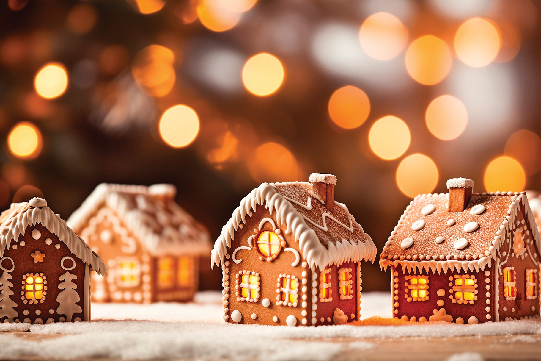 If your family traditions include decorating gingerbread houses, make miniature ones to become the stars of your tablescape. For a quick and easy project, glue sequins, glitter, or hand-draw on green party hats (matte or metallic, depending on your theme) to mimic cute little winter trees. If you’re using glitter, line your workspace with old newspaper before you begin. Otherwise, your table will stay sparkling ‘til the Fourth of July.