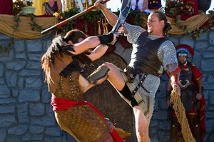 So, on an 85-degree fall evening in Las Vegas, I walked through the metal detectors at the festival gate. The next moment, I was entirely immersed in another time and place. A winding path led through stalls of merchants peddling their wares—leather-bound journals, hand-forged blades, glassware, battle axes. My head was on a swivel, looking at each eclectic vendor and the ornate garb of the knights, hobbits, elves, lords and ladies. And there were camel rides. There’s nothing like watching the joy on a pirate’s face as he climbs atop a camel’s hump and goes for a ride.