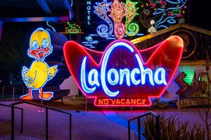 Point is, I had a Neon Museum story and shared it. Over the course of our interviews, Berger and Young each told me stories of their own. Every sign you see on a tour of the Neon Museum—and the properties behind those signs, and the city that hosted those properties—has a tale worth telling. And if you’ve taken a tour of the boneyard, you know it’s the stories, above all else, that stitch together all those glass-and-metal hunks of intellectual property.